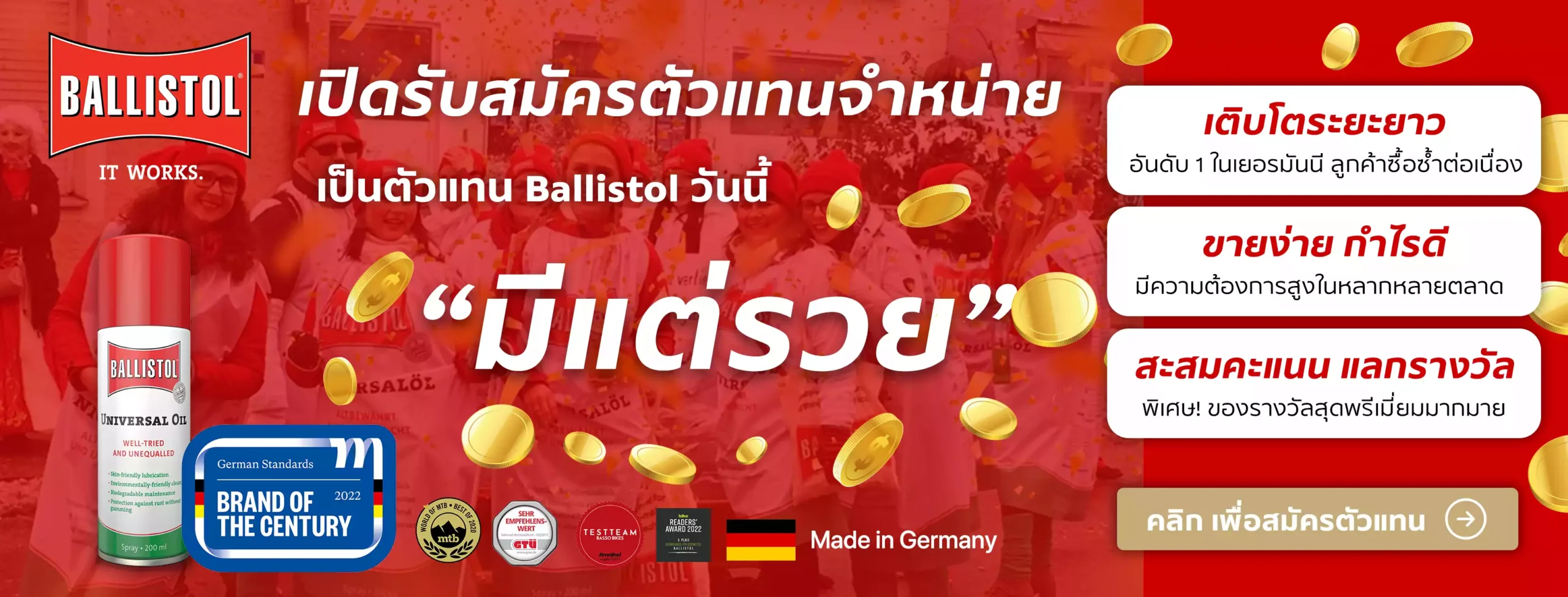 พิเศษสุด สำหรับตัวแทนจำหน่าย Ballistol ทุกท่าน ท่านจะได้รับคะแนน B Point สำหรับทุกๆการสั่งซื้อผลิตภัณฑ์ Ballistol และท่านสามารถสะสมคะแนน B Point เพื่อแลกรับของรางวัลและสิทธิพิเศษอื่นๆอีกมากมายได้ฟรี! ทันที