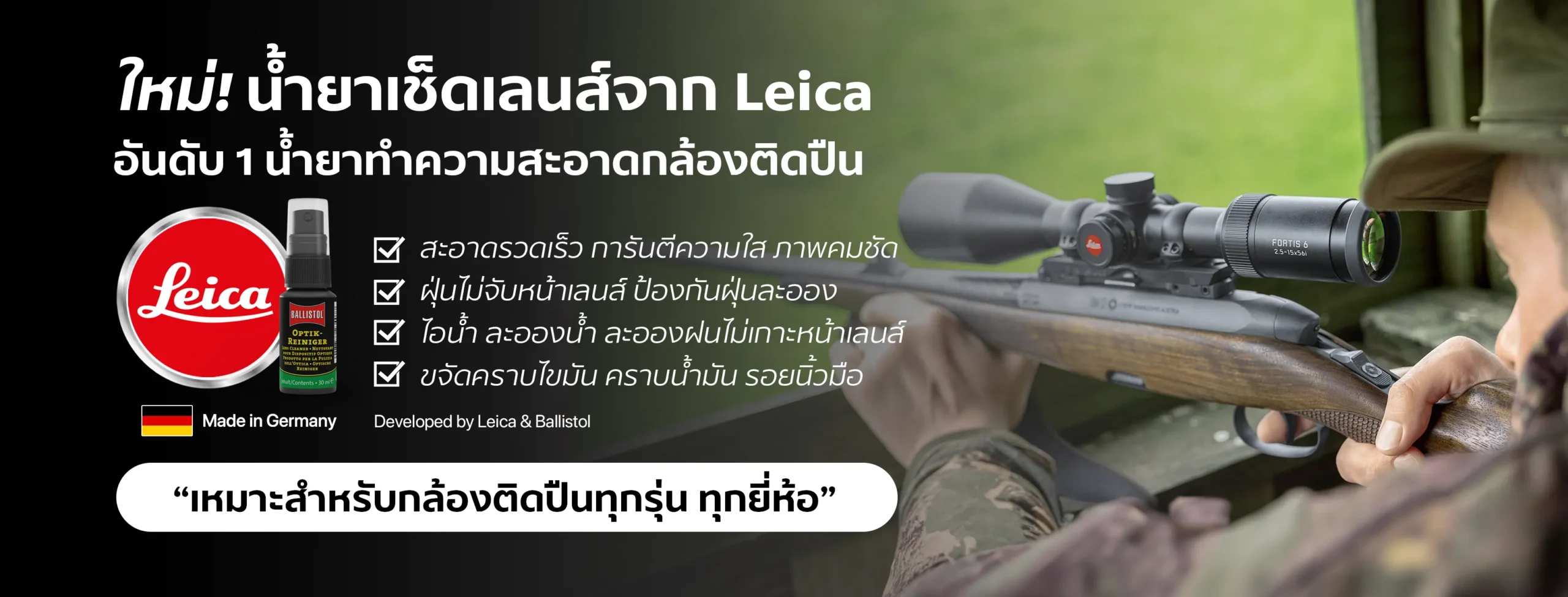 เนื่องจากเลนส์กล้องติดปืน Rifle Scope, กล้องจุดแดง Red Dot, กล้องวัดระยะ, กล้องส่องเป้า ฯลฯ เป็นอุปกรณ์ที่มีความบอบบางและต้องการการดูแลเป็นพิเศษ Leica ร่วมกับ Ballistol ประเทศเยอรมันนี จึงได้พัฒนาน้ำยาทำความสะอาดเลนส์ด้วยเทคโนโลยีเฉพาะของทาง Leica ที่ออกแบบมาสำหรับเลนส์กล้องโดยเฉพาะ คุณภาพสูง ให้เลนส์สะอาด ภาพคมชัด ให้การมองเห็นดีที่สุด เป็นมาตรฐานใหม่ที่มืออาชีพเลือกใช้สำหรับการบำรุง ดูแล รักษาเลนส์กล้องติดปืน, กล้องวัดระยะ, กล้องส่องเป้า ฯลฯ ได้อย่างถูกต้องเหมาะสม ไม่ทำให้สารเคลือบเลนส์ลอก (ไม่กัด Coating เลนส์) ไม่ทำให้กระจกเลนส์เสียหาย และไม่ทำลายพื้นผิววัสดุอื่นๆ ไม่กัดกร่อนโลหะหรือพลาสติก ปลอดภัยต่อปืนและผู้ใช้งาน ช่วยให้เลนส์มีอายุการใช้งานยาวนาน